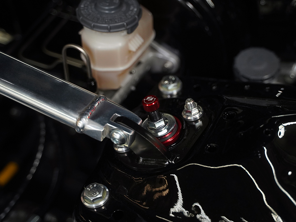 Place the coilover into place and hand tighten the top hat 14mm nuts.